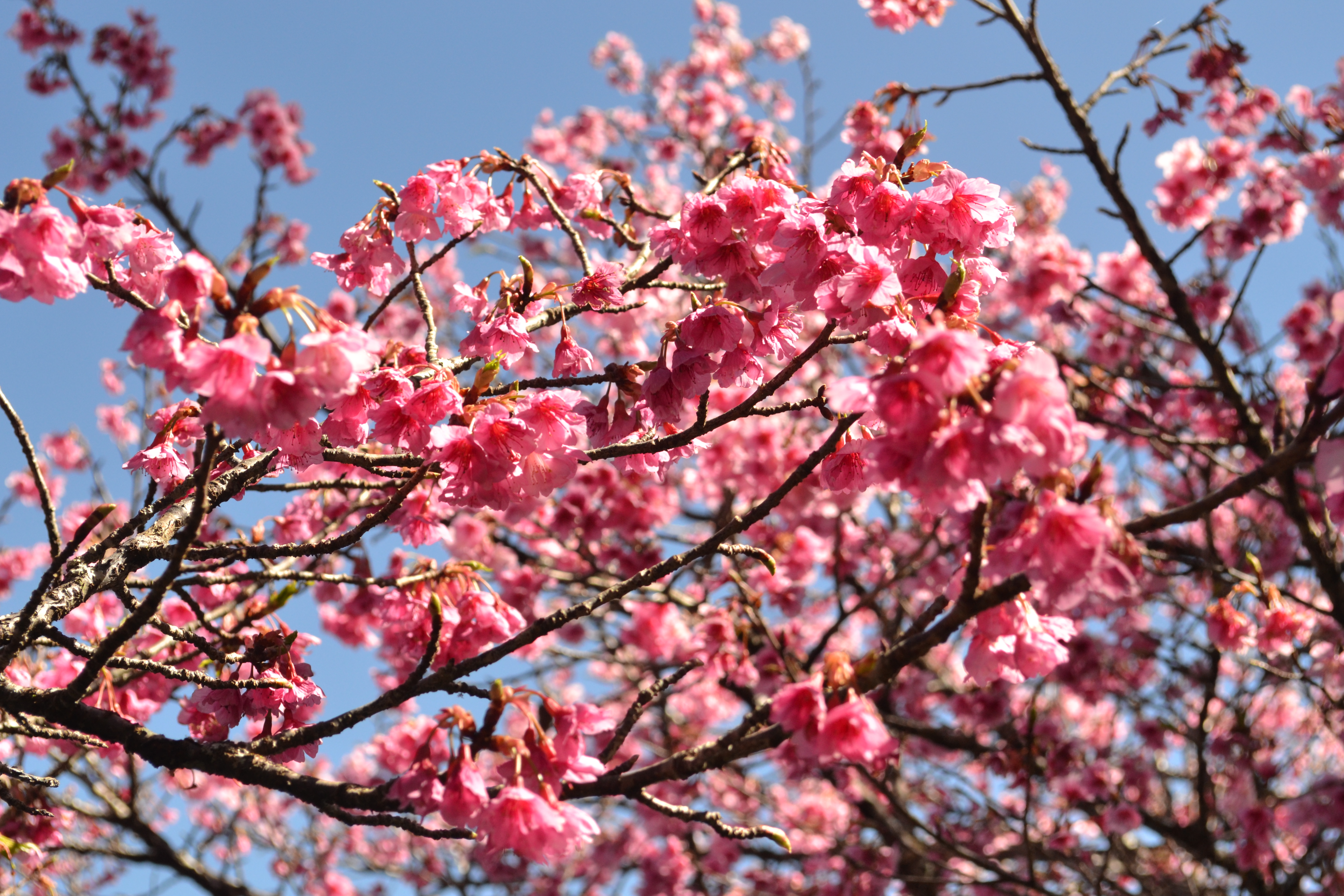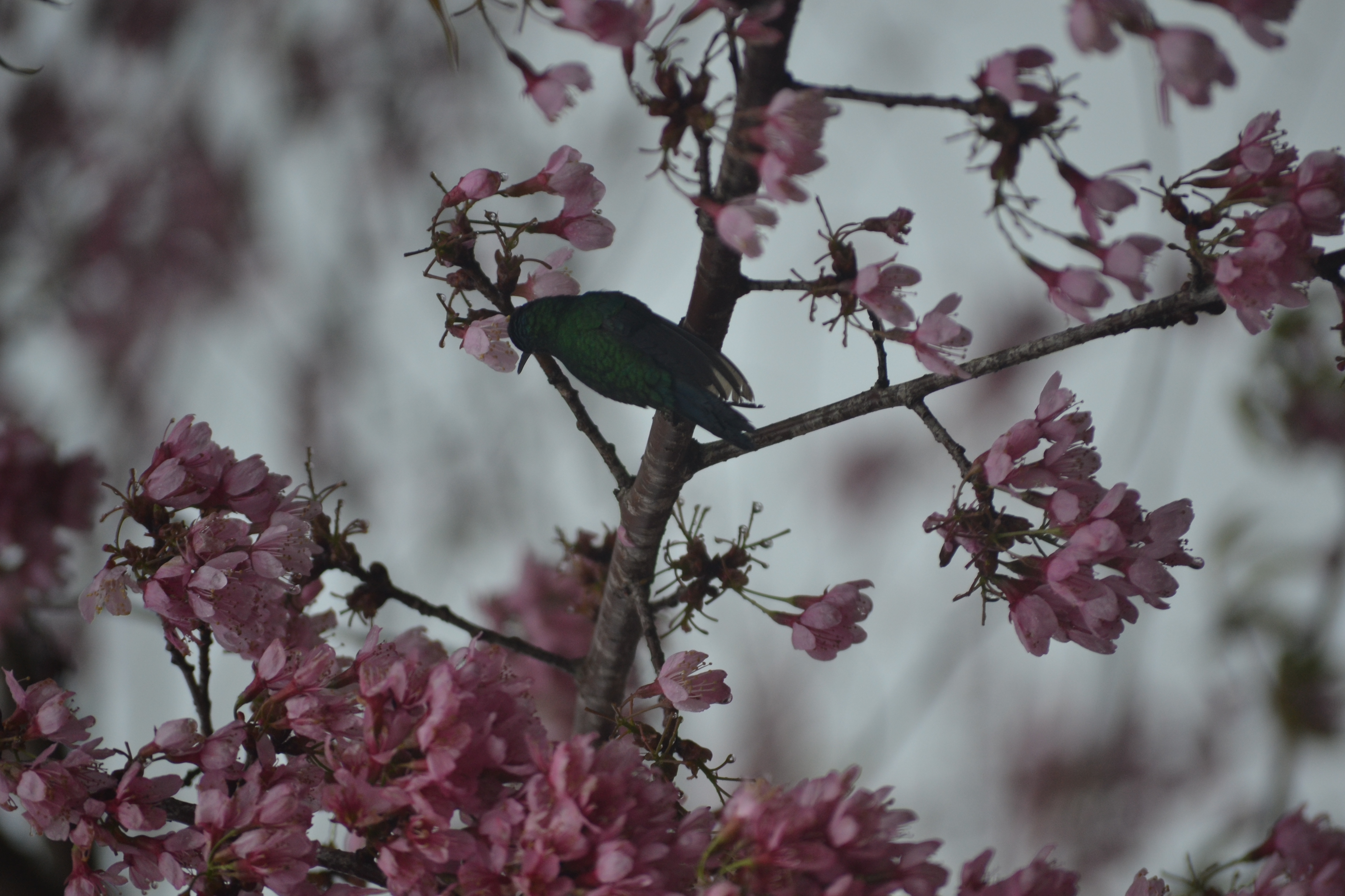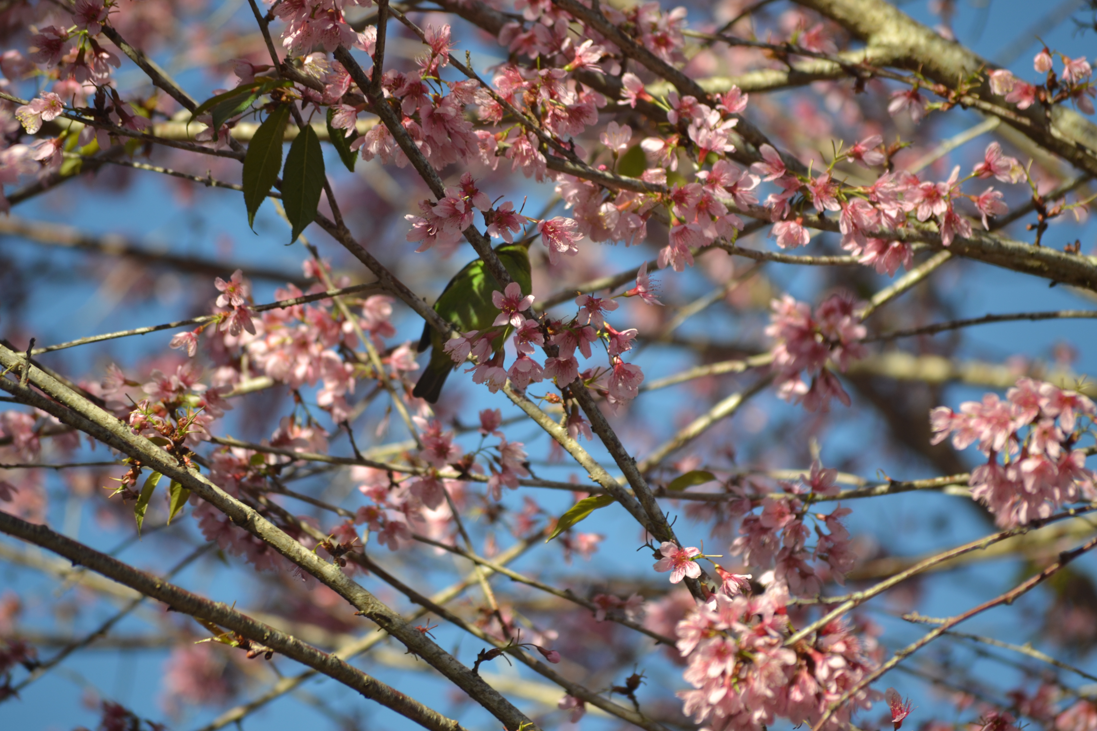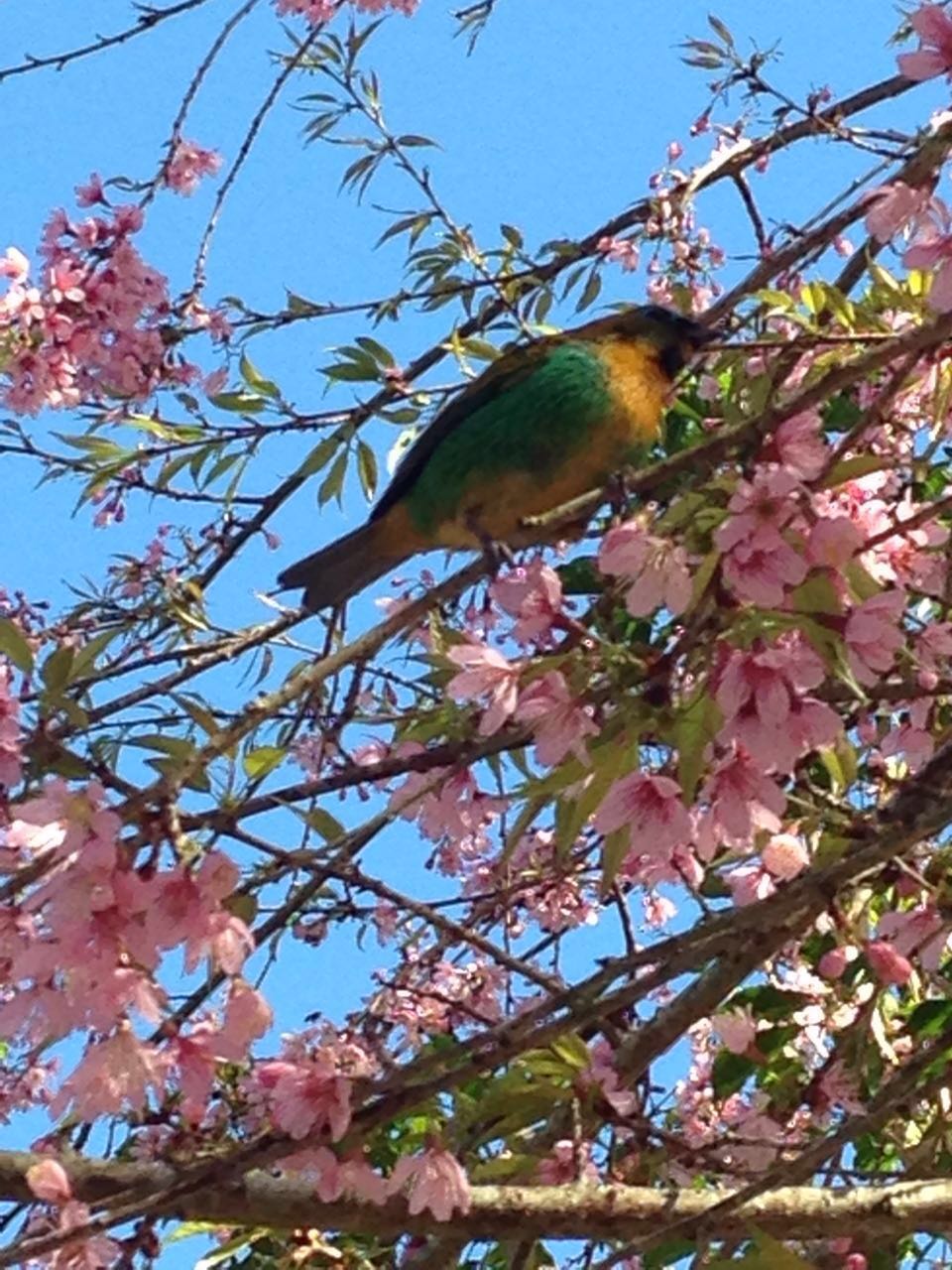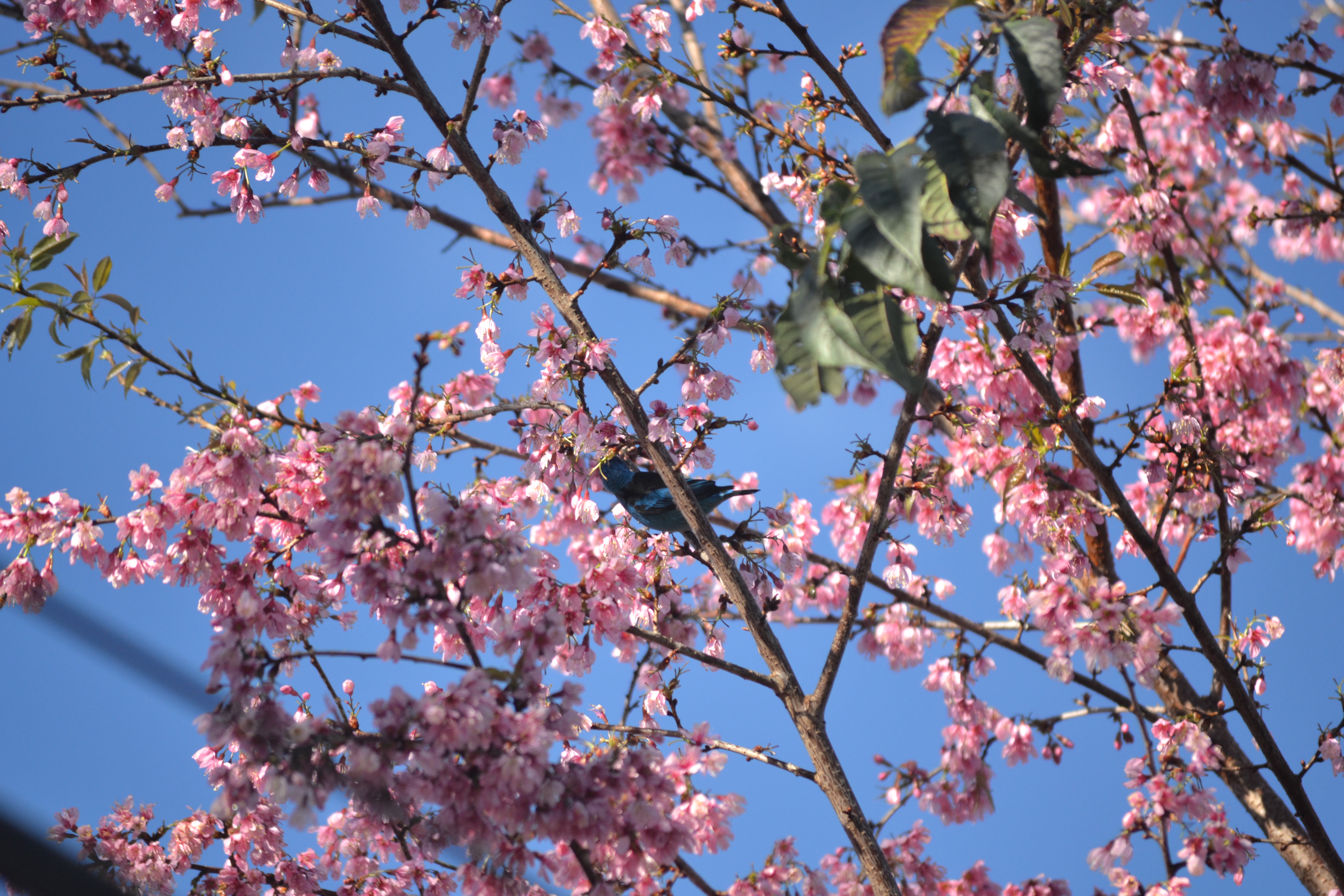 das cerejeiras, com o azul do céu e as pequenas criaturinhas do ar usufruindo