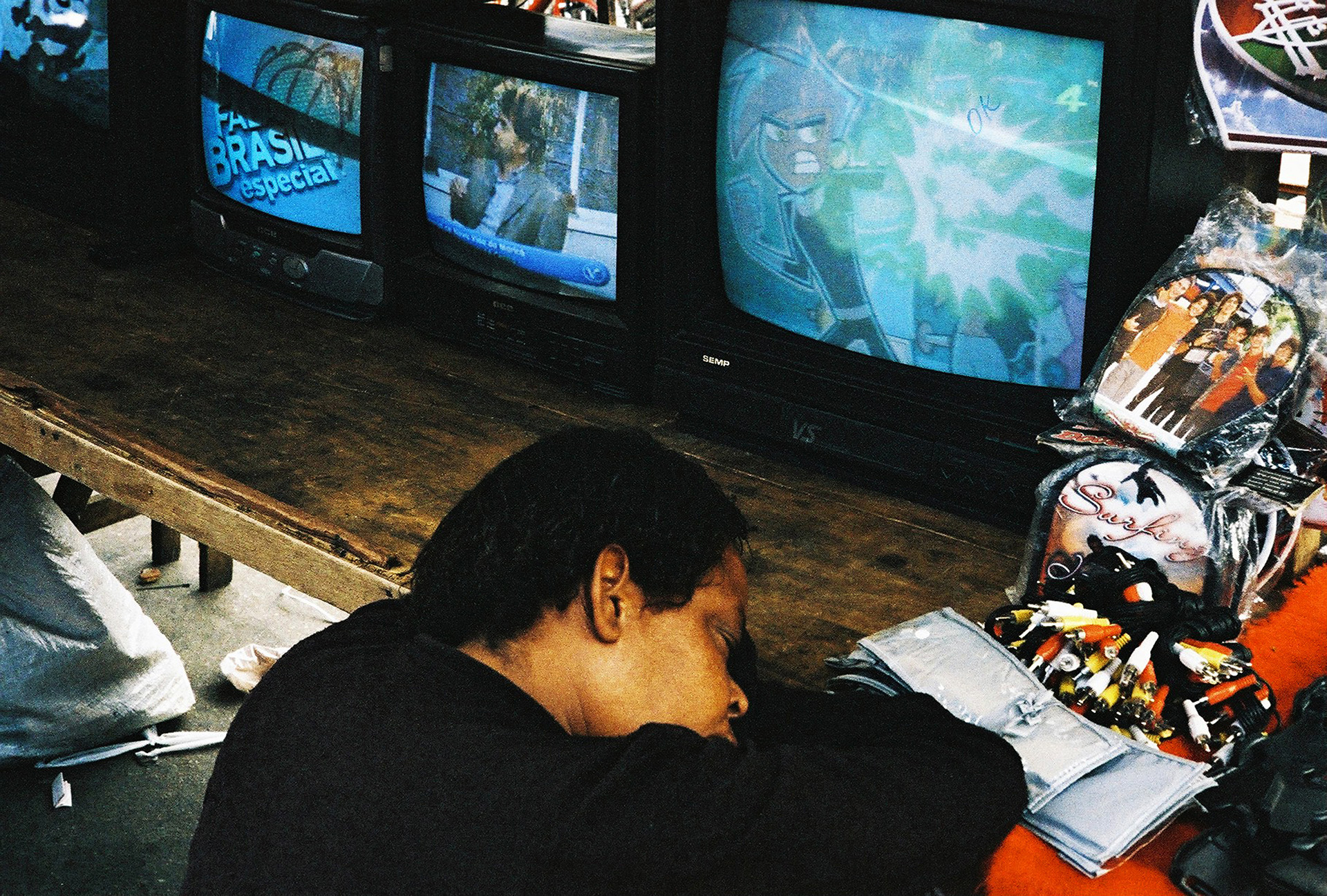 Procurei abordar o trabalho a partir da personagem, um tipo brasileiro que dormitava sobre o balcão numa feira no Complexo da Maré, no Rio de Janeiro. Editei considerando vários aspectos. Emocionais: reminiscências de momentos de vida; representações de coisas estranhas que acontecem nos sonhos, às vezes bem real e outras subjacentes; formas sensuais; suspense; inquietações; desejos de realização.